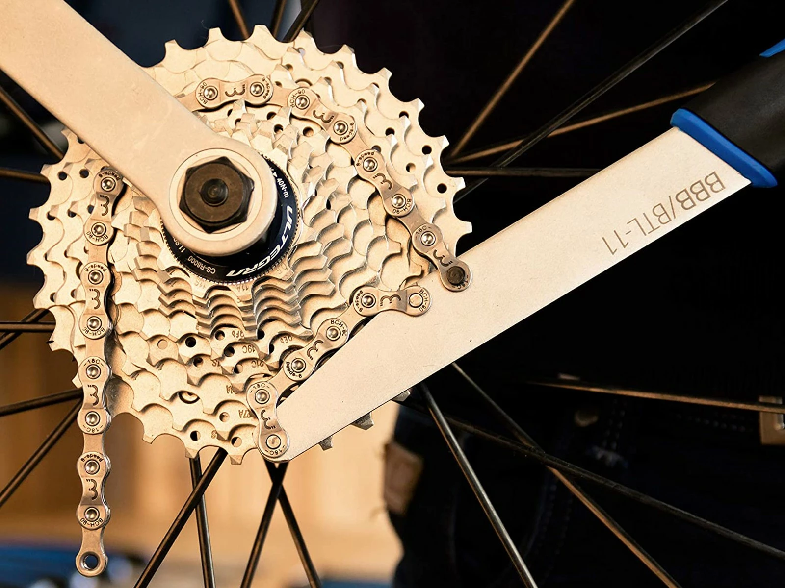 Maintien en place des pignons lors du démontage de l’écrou de serrage des cassettes.