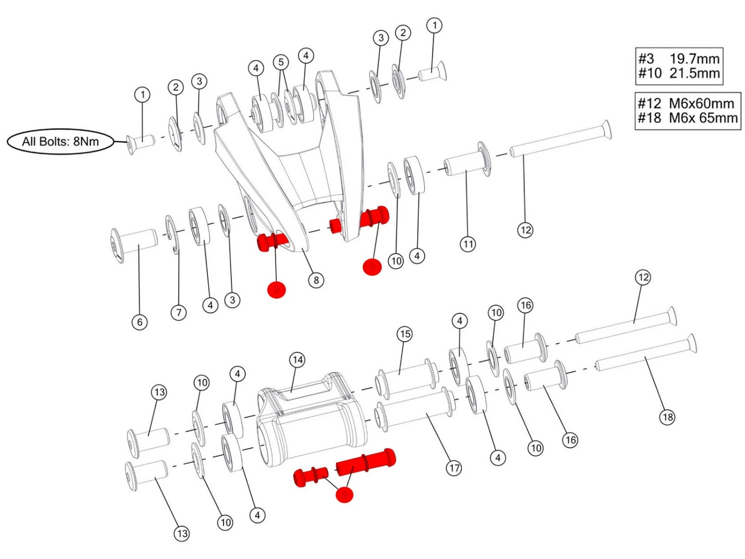 BMC Rear Shock Bolt Set pour Speedfox et Trailfox