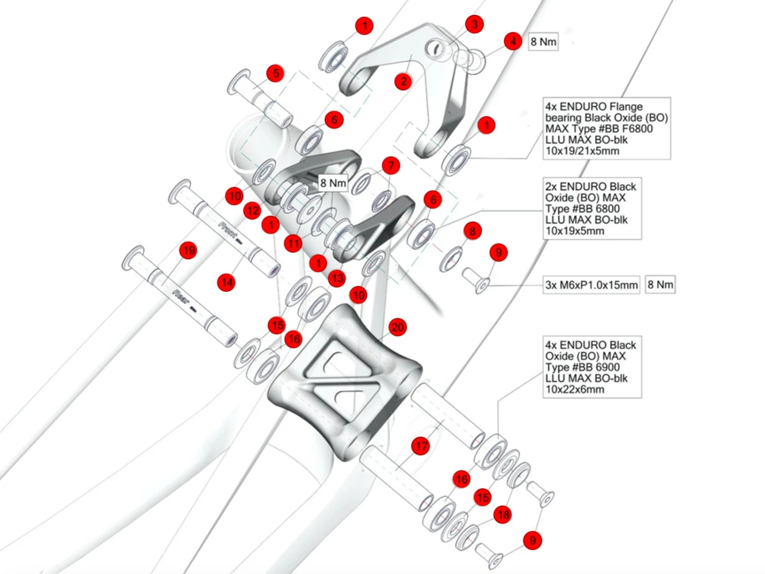Kit de visseries de suspension arrière avec roulements pour Fourstroke 01 et Fourstroke à partir de l’année modèle 2023.