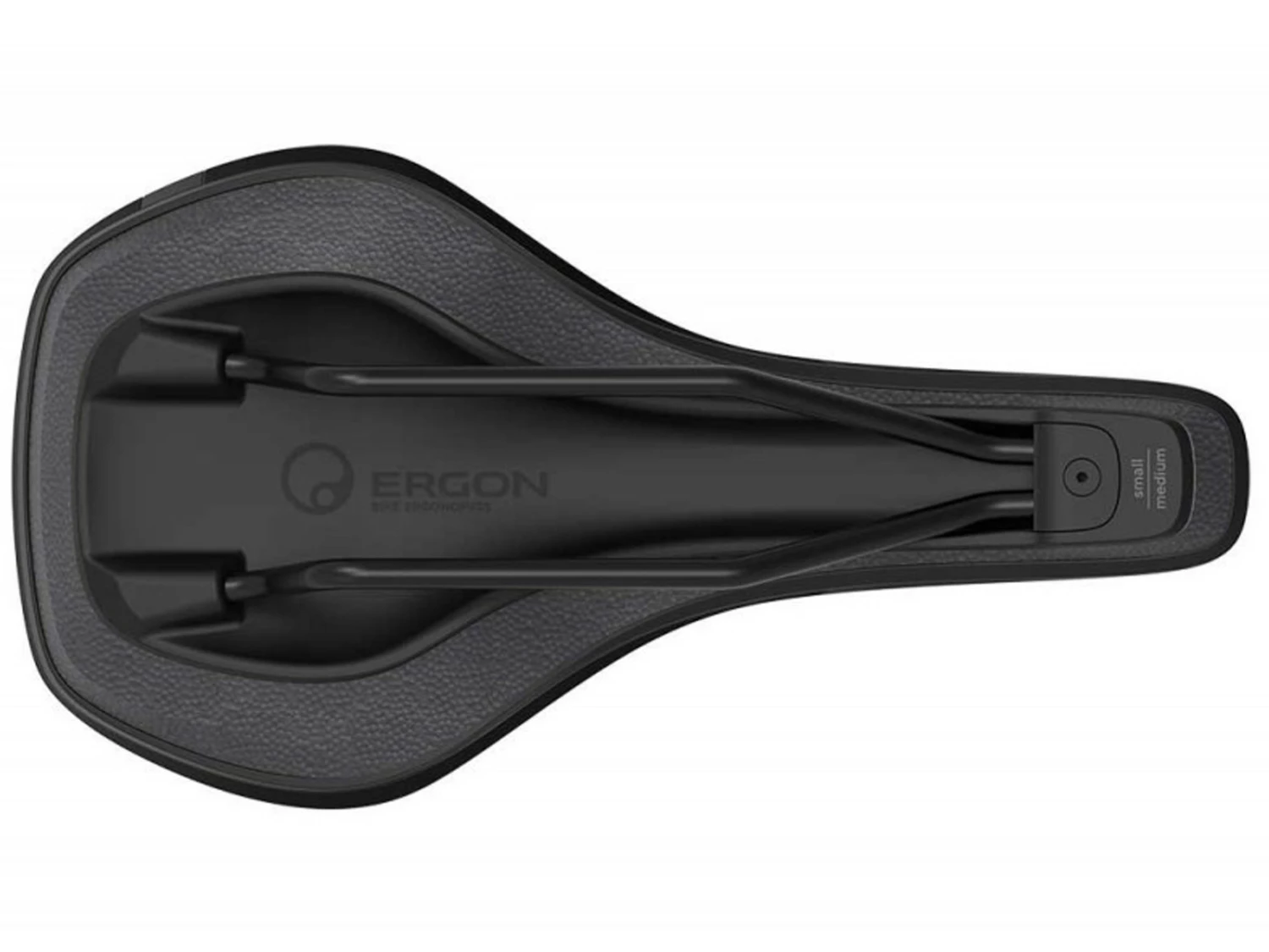 La vue ci-dessous du SMC Core montre toute la surface de la selle – l’amortisseur en élastomère haute performance découple les deux coques de selle l’une de l’autre. Cette construction en sandwich avec noyau élastique permet à la selle de suivre les mouvements de pédalage naturels de manière plus ergonomique dans les trois directions. Les irrégularités de la surface de conduite et les vibrations sont efficacement filtrées grâce à Ergon CORE 3D ® .