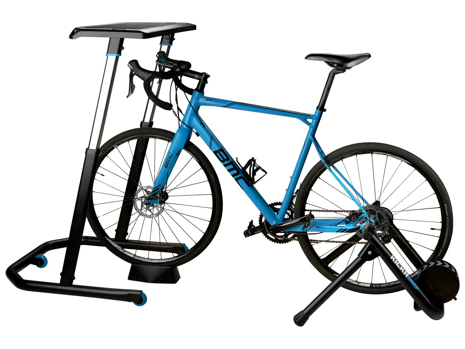 Le bureau d’entraĂ®nement ajustable Wahoo Fitness Kickr est conçu pour vous permettre d’accomplir plusieurs tâches en mĂŞme temps. Utilisez-le en tant que bureau lors de vos sĂ©ances de home-trainer ou en tant que bureau en position debout dans votre bureau. Il est entièrement ajustable afin d’optimiser facilement son utilisation dans les positions suivantes : Position debout, position assise droite, pĂ©dalage avec les mains sur les poignĂ©es, pĂ©dalage en descente ou pĂ©dalage avec prolongateurs triathlon. Le bureau Kickr dispose de supports intĂ©grĂ©s pour smartphone et tablette. Le cadre en acier assure la robustesse du bureau, tandis que sa surface antidĂ©rapante maintient tous les objets en place, mĂŞme si vous transpirez beaucoup.