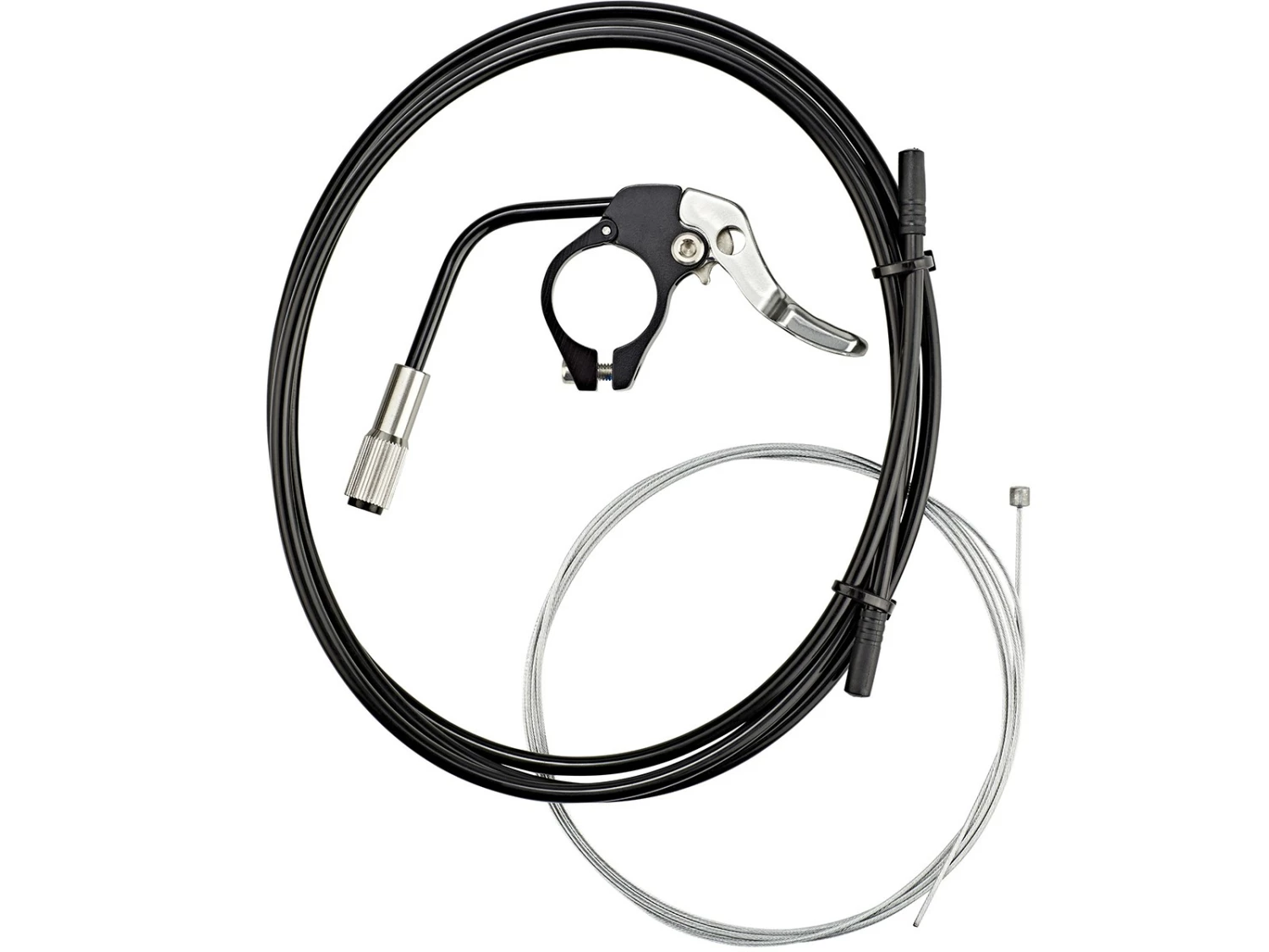 Le réglage de la hauteur se fait par le levier Remote, dont le passage de câble est externe avec une prise basse sur le corps pour éviter tout frottement et apporter un style épuré au vélo.